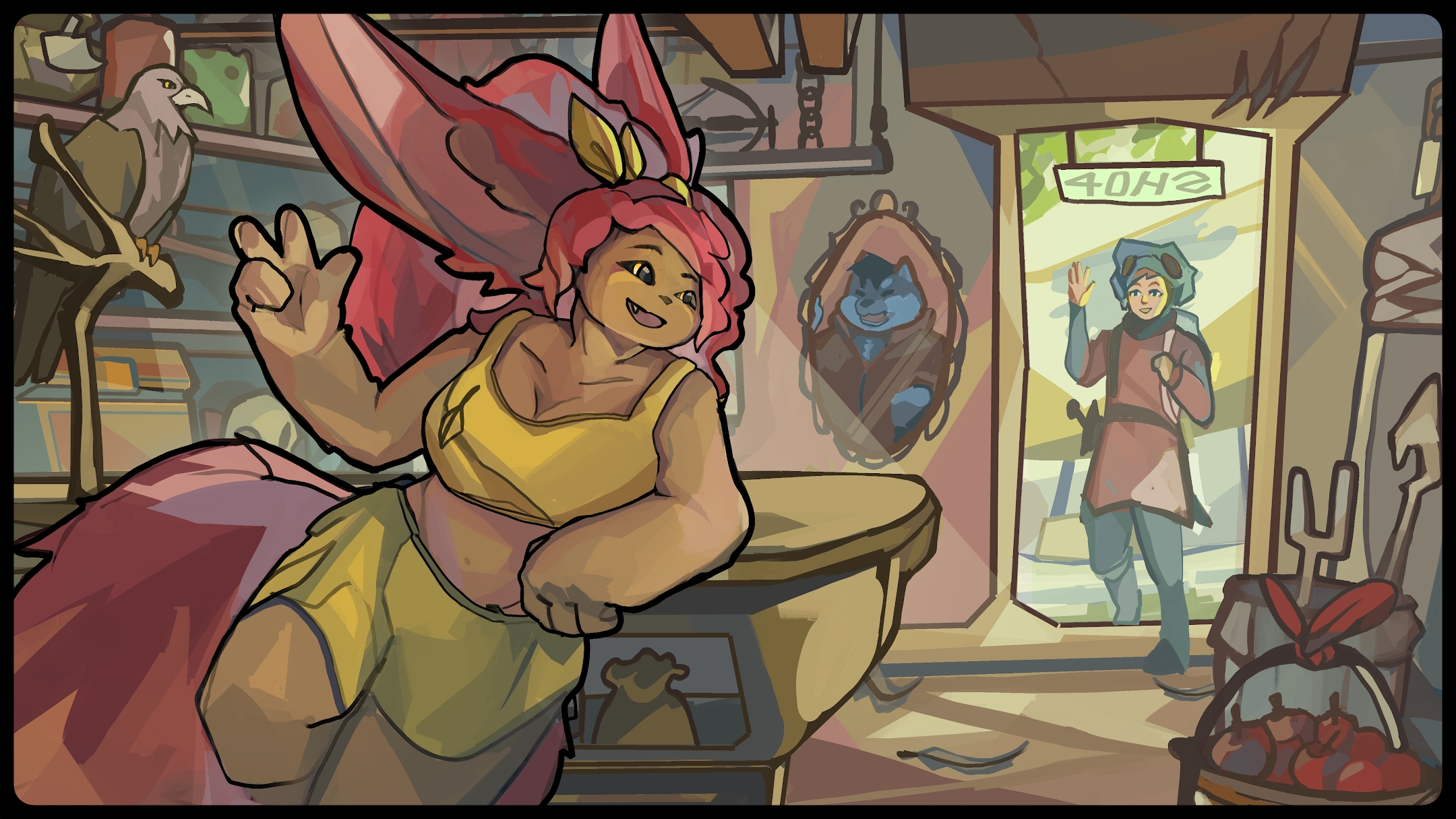 things such as her werewolf form and running a shop were just ideas that were applied and stuck well. i have always been a fan of transformation in character design so it made sense that it would be applied to Ravi.