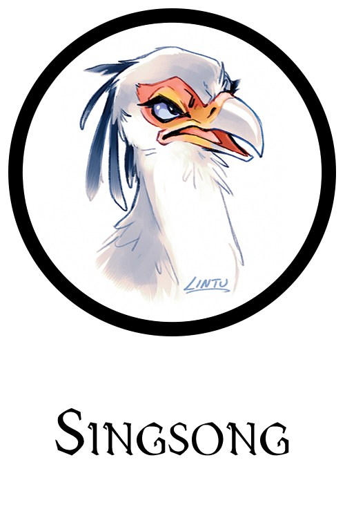 Singsong was a successful acrobat, part of a Kenku performance group in a traveling circus. But as a Kenku they would not make up their own performances but mimic others. After accidently becoming a Warlock, Singsong was thrown out of the circus and travelled along for a few months aimless. Running into a man named Mackenzie the two of them became fast friends and journey together. Ending up in Whitkin where they aimed to take a few simple jobs to earn some quick gold.