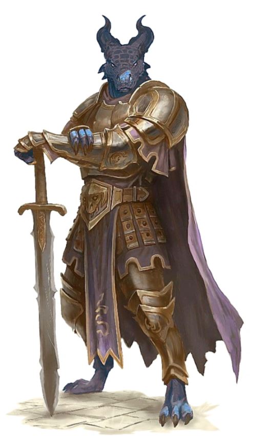 Dragon Knights are a small collective and exception to the typical Dragonborn as they sport wings and a tail more like their true dragon cousins. These Knights like the original Dragonborn were originally born from a true dragon and a humanoid but their early closeness with true dragon heritage and pride allowed them to keep their distinction from dragons. Dragon Knights often more prideful and hold an oath close to them rather than identifying themselves based off the colour or material of their scales.