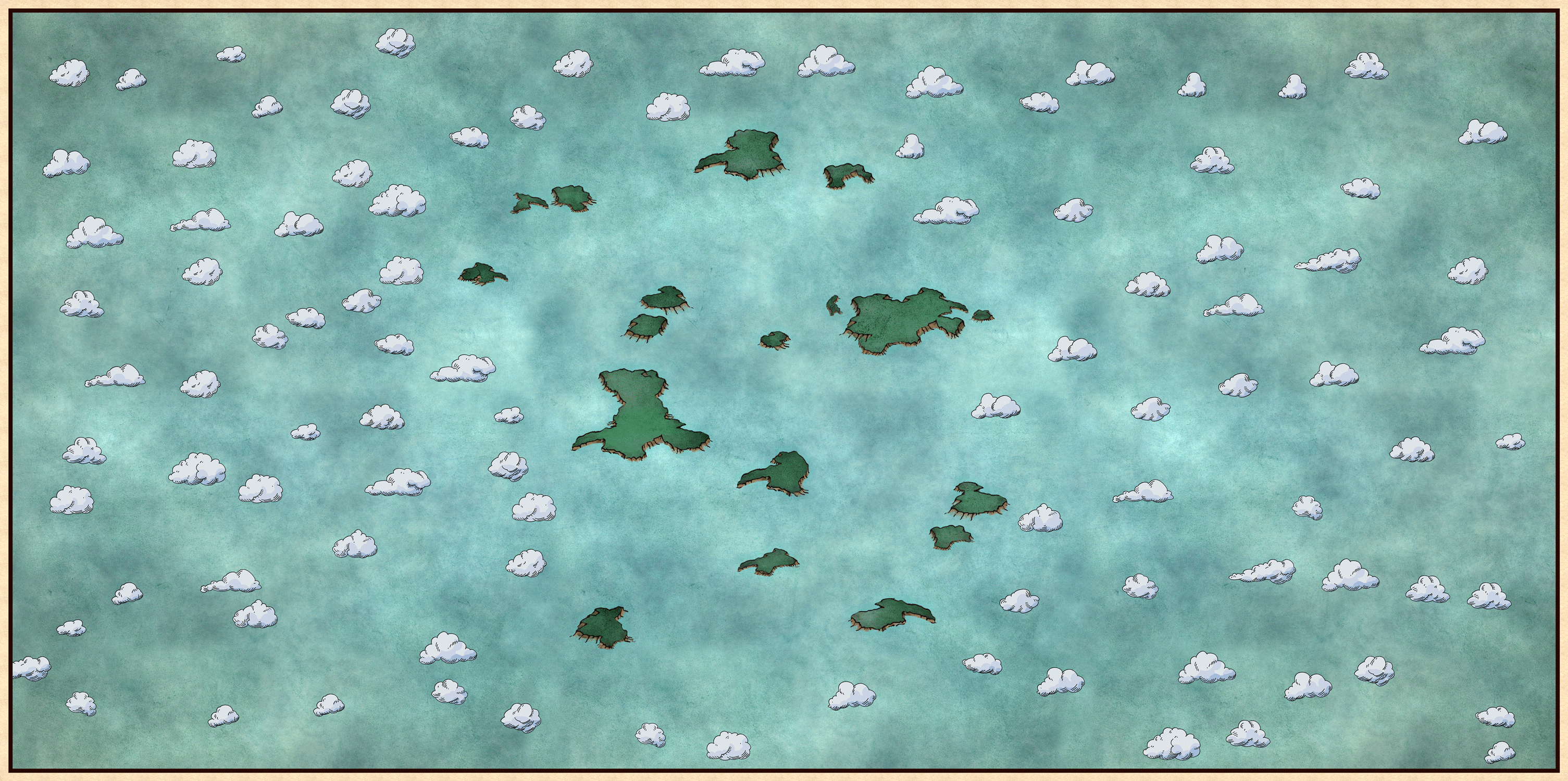 The realm is full of floating islands of various sizes. Small shards the size of a house to more rare land masses able to hold an entire village and the surrounding region. almost every floating landmass has some sort of life living on it and many flora and fauna in this realm have adapted to a world of sky.